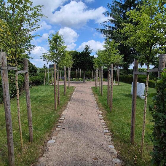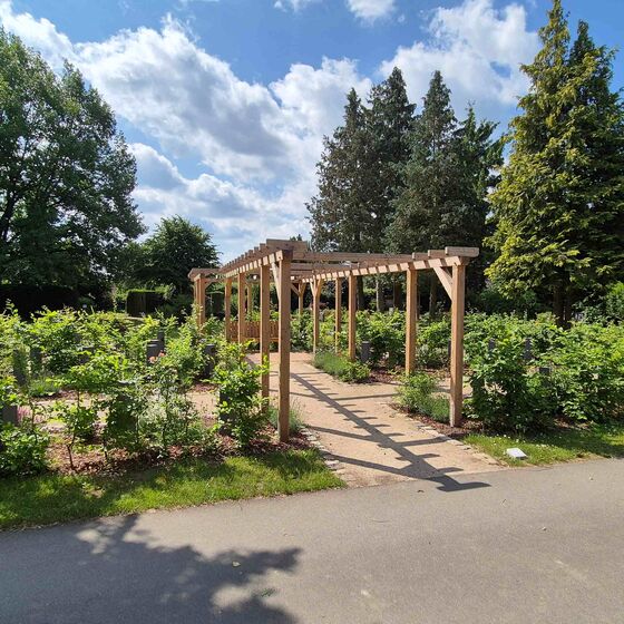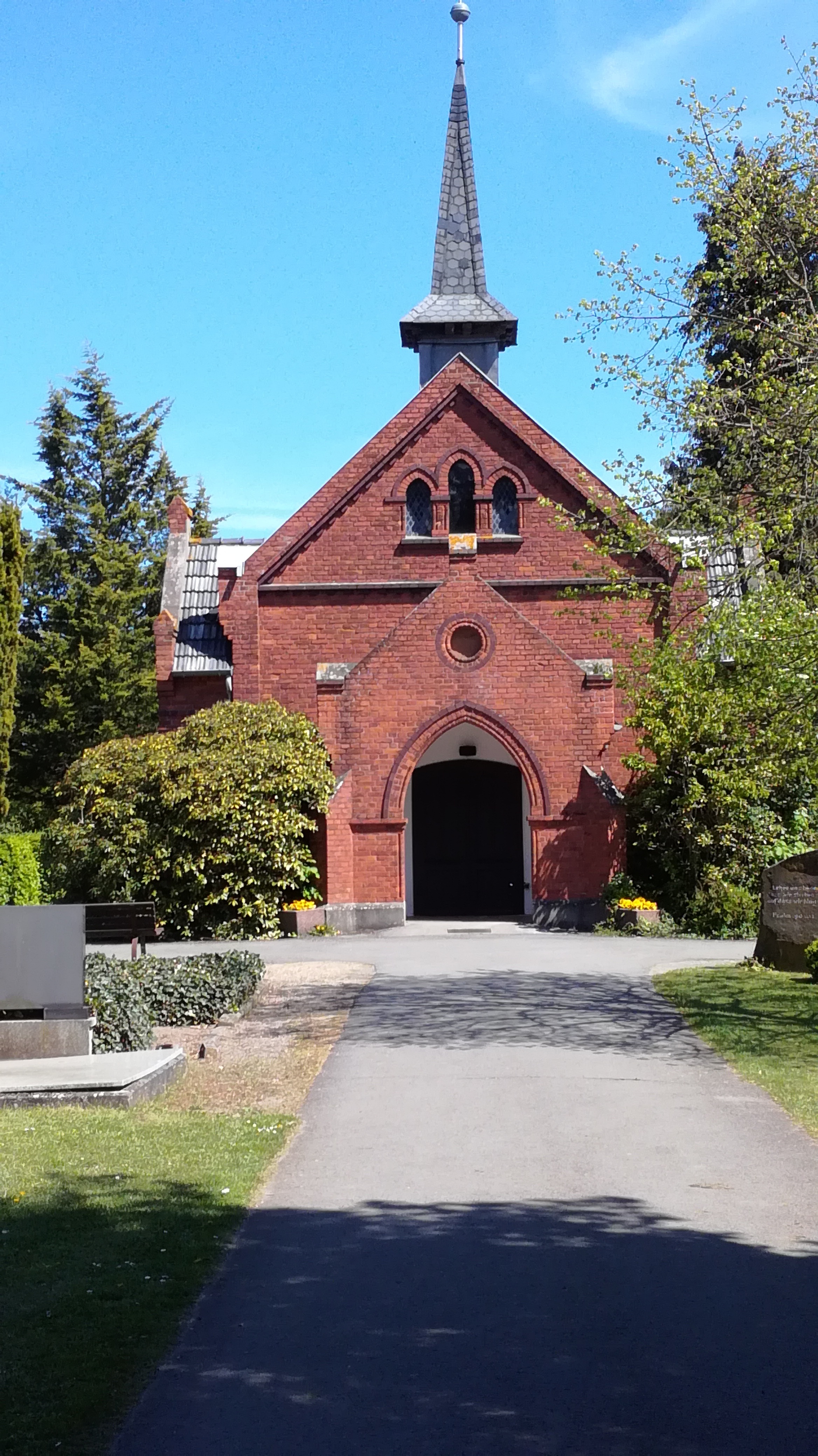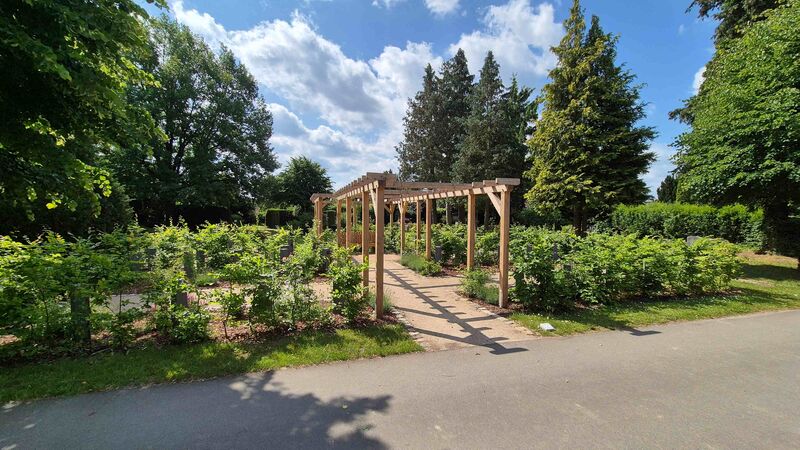 Der Hauptweg führt weiter zum Zentrum des Friedhofs, der Kapelle. Hier finden die Trauerfeiern und am Ewigkeitssonntag um 15 Uhr ein Gottesdienst statt. Von der Kapelle aus führen die Wege zu den unterschiedlichen Grabfeldern, die nach individuellen Wünschen und Vorstellungen der trauernden Angehörigen ausgewählt werden können.