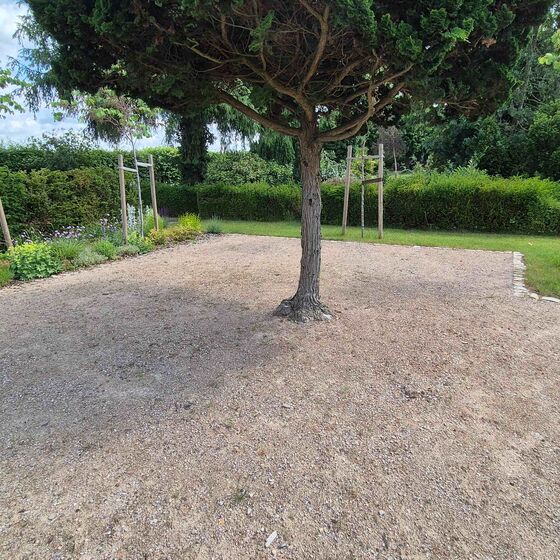 An mehreren Hauptwegen stehen Alleen aus unterschiedlichen Baumarten. In den Grabfeldern stehen unterschiedliche Bäume als Solitäre (z. B. Birke, Eiche, Thuja). Die Mischung aus Laubbäumen und Immergrünen sorgt dafür, dass der Verlauf der Jahreszeiten wahrgenommen werden kann und der Friedhof auch im Winter ein grünes Gerüst hat.